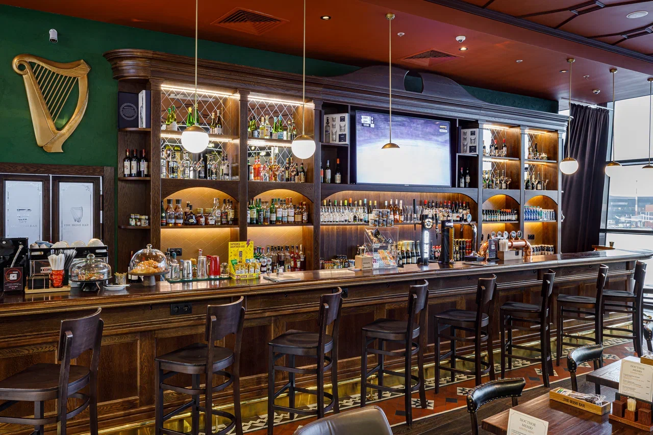 Айриш Бар ценят за атмосферу неспешности, неформальности и человечности. Здесь наливают легендарное пиво: Гиннесс, Килкенни, Смитвикс, готовят блюда ирландской и европейской кухни. В меню: авторские закуски к пиву, сытные завтраки, колбаски, кесадилья, рёбра, а также десерты и свежий кофе.