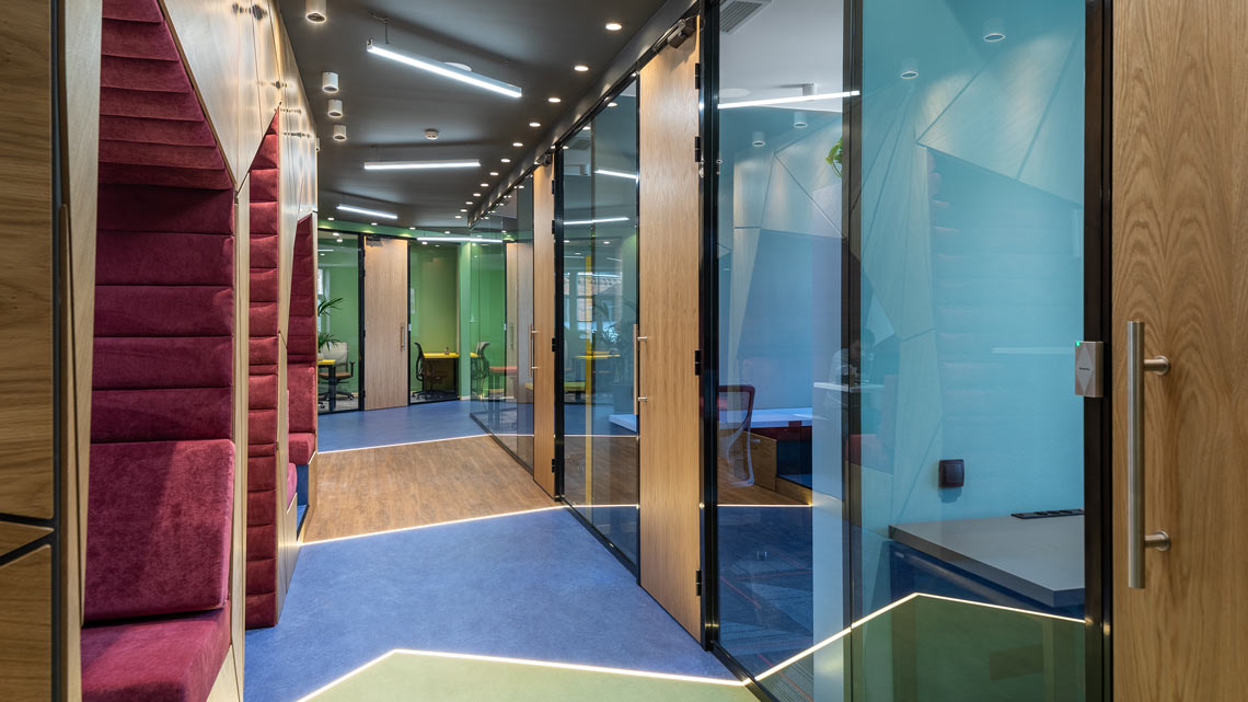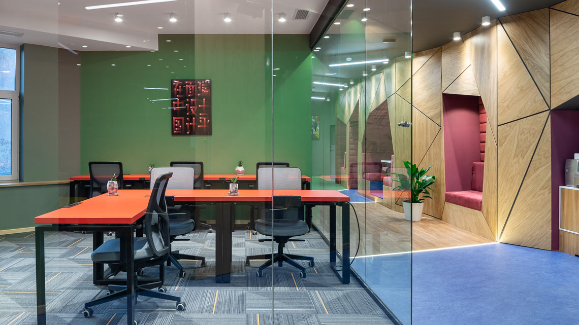 На общей площади 670 квадратных метров расположилось 147 рабочих мест в формате smart-офисов и open space, переговорные комнаты и общие зоны.