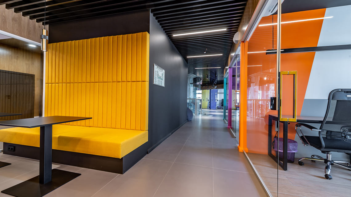 Для работы здесь доступны 216 рабочих мест, 47 смарт-офисов и 2 переговорные комнаты, а для отдыха — оборудованная кухня, кофеспот и лаунж-зона с Xbox и настольными играми. Каждая неделя заканчивается традиционной пятничной вечеринкой, а раз в 3 месяца проходит масштабная тематическая вечеринка.
