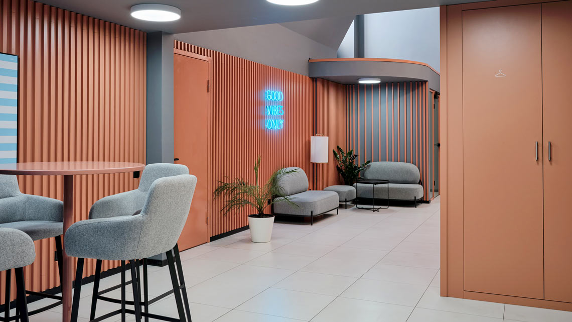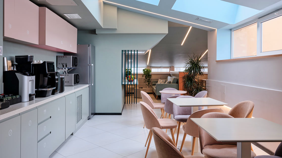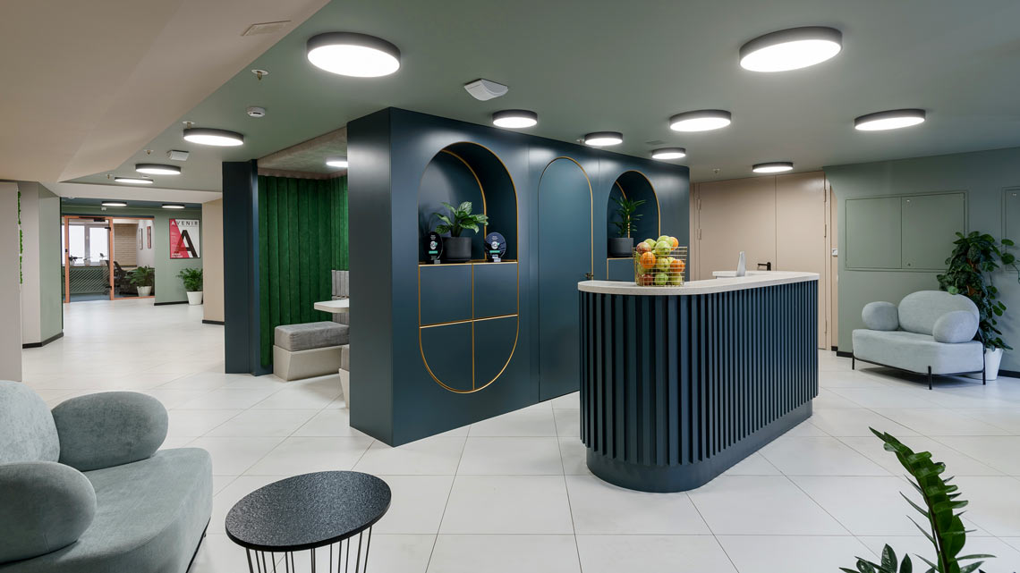 Локация занимает общую площадь 1852 квадратных метра, на ней оборудовано 366 рабочих мест в формате отдельных кабинетов и open space. Помимо этого в офисе есть 3 переговорные комнаты вместимостью 4, 8 и 12 человек и фитнес-уголок.